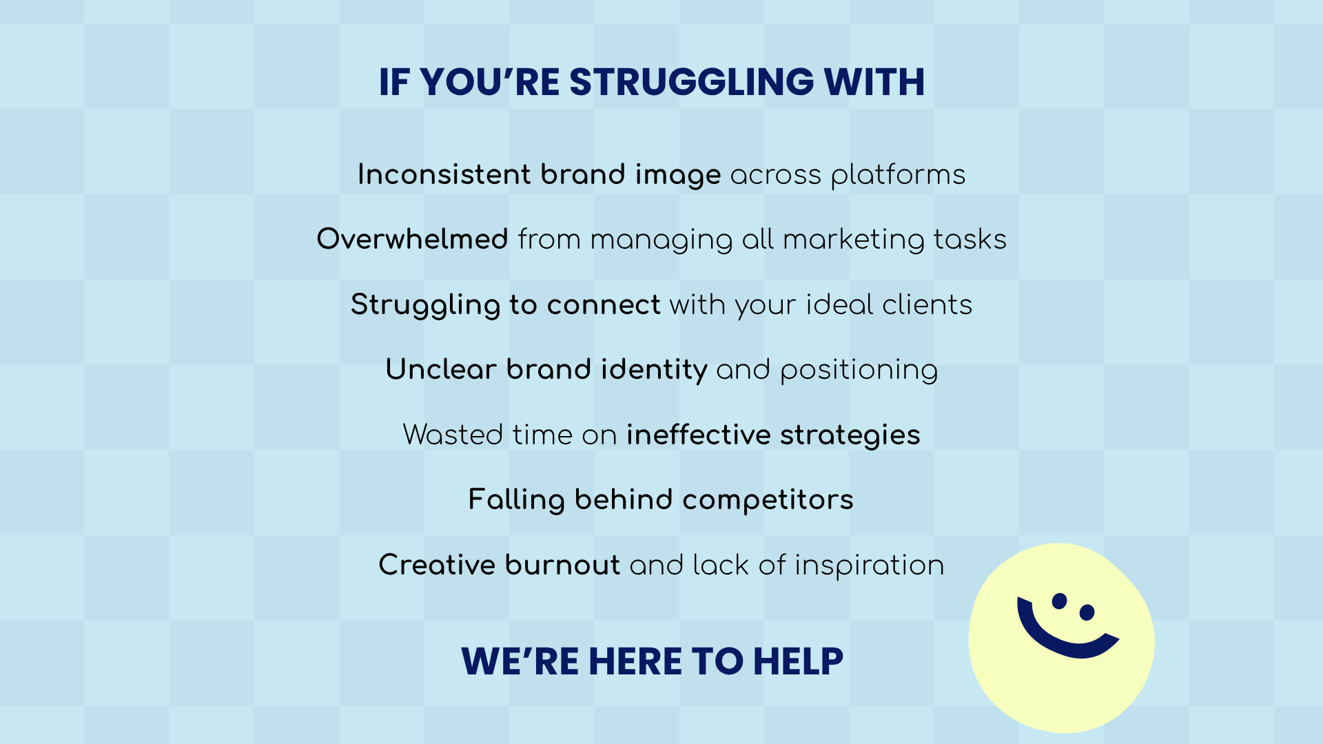 We’re here to eliminate the frustration of inconsistent branding and help you craft vibrant, memorable brands that truly reflect your values and stand out on the grid + beyond.